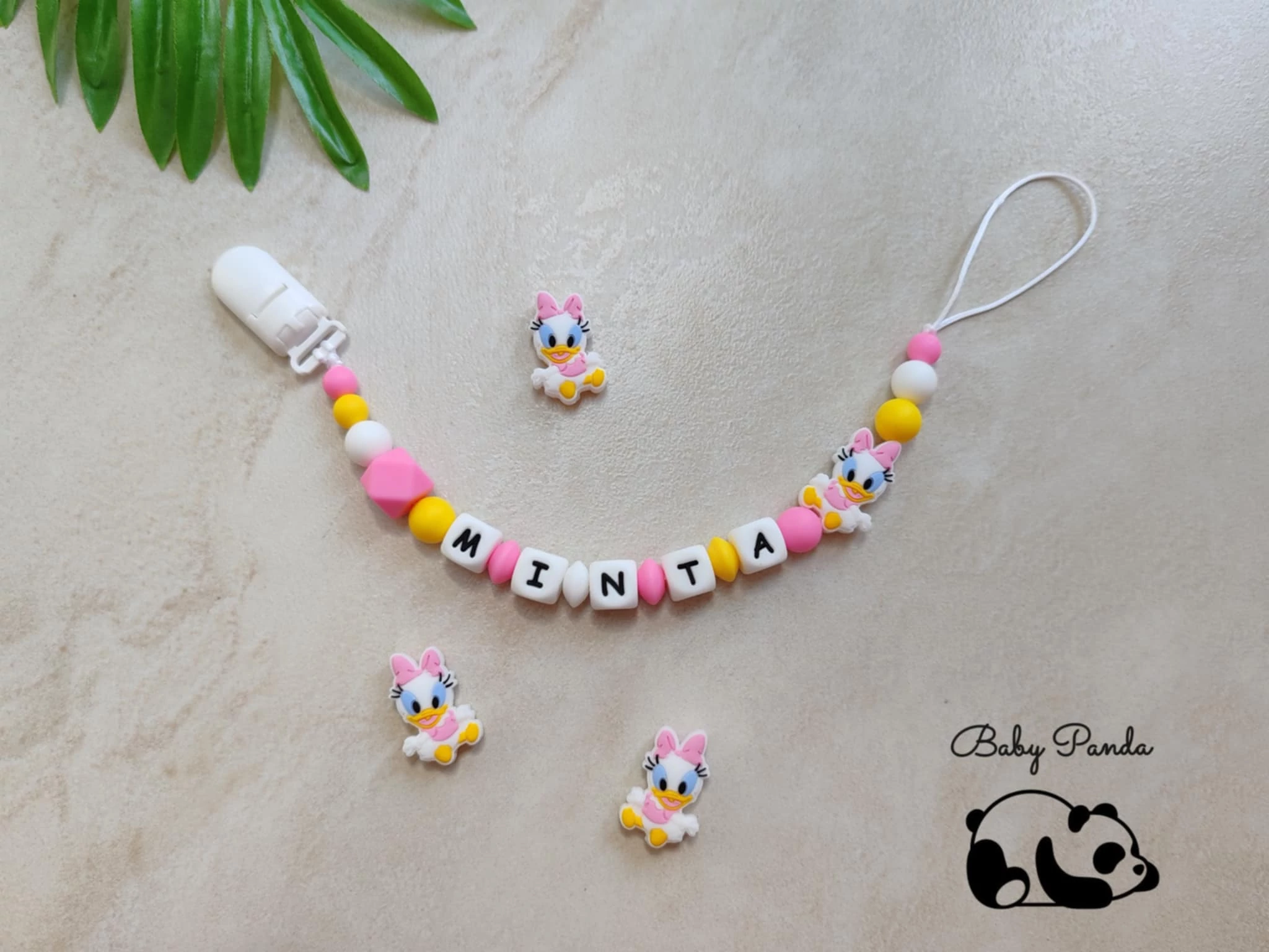 Ajándékozz örök élményt – egy Daisy kacsa mintás névre szóló cumilánc olyan ajándék, amelyre évekkel később is emlékezni fognak.
