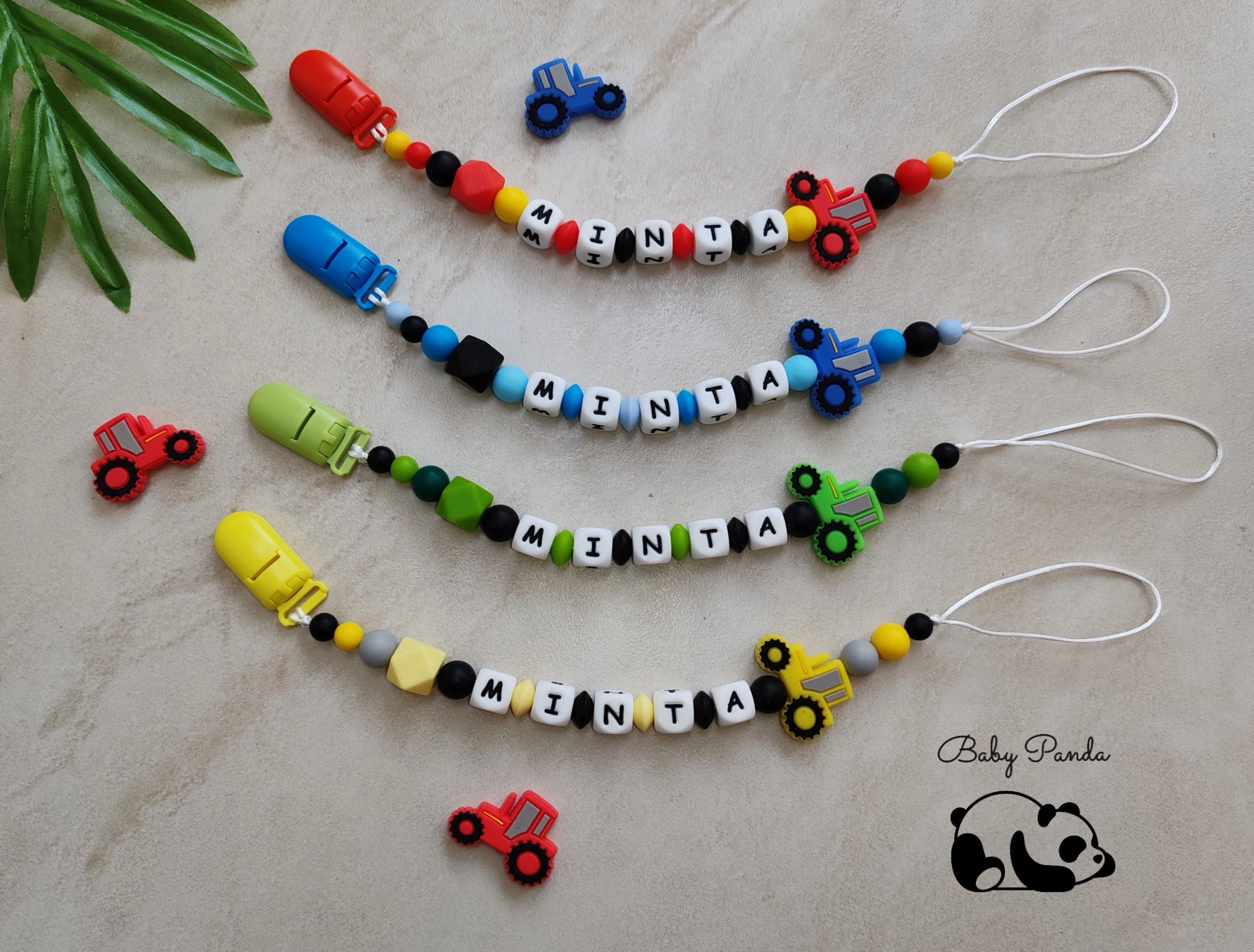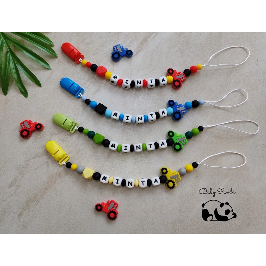 Ez az egyedi cumilánc egyesíti a praktikumot és az érzelmi értéket – hiszen minden darab személyesen, a választott névvel készül. A traktoros dizájn pedig különösen népszerű a kisfiúk körében, így akár születésnapra, keresztelőre vagy babaváróra is kiváló ötlet.