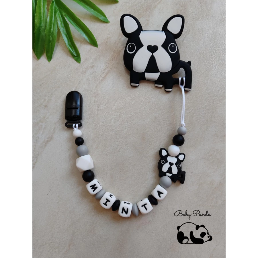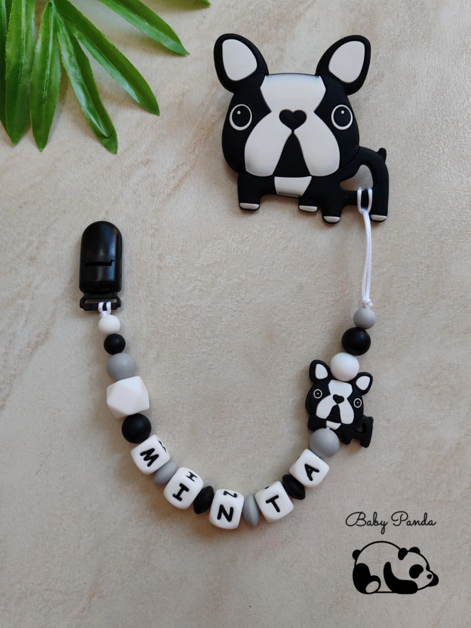 A fekete bulldog mintás névre szóló rágcsalánc a vagány megjelenést ötvözi a fogzási időszak praktikus támogatásával. A puha, biztonságos szilikon gyöngyök kíméletesek a baba ínyéhez, a különleges bulldog figura pedig garantáltan egyedi stílust ad. Egyedi névvel készítjük, így minden darab személyes, megismételhetetlen emlék. Tökéletes ajándék születésnapra, keresztelőre vagy bármilyen különleges alkalomra. Fedezd fel prémium választékunkat az egyedi kulcstartó, a MAM cumisüvegek, az emlékőrző dobozok és a babanapló kiegészítők kategóriában, hogy minden pillanat örök emlékké váljon.