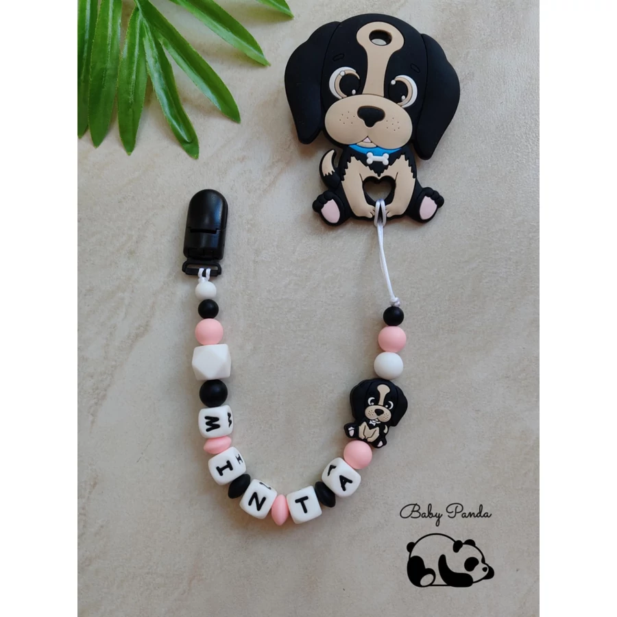 Névre szóló rágcsalánc - Kutyus - fekete - rózsaszín