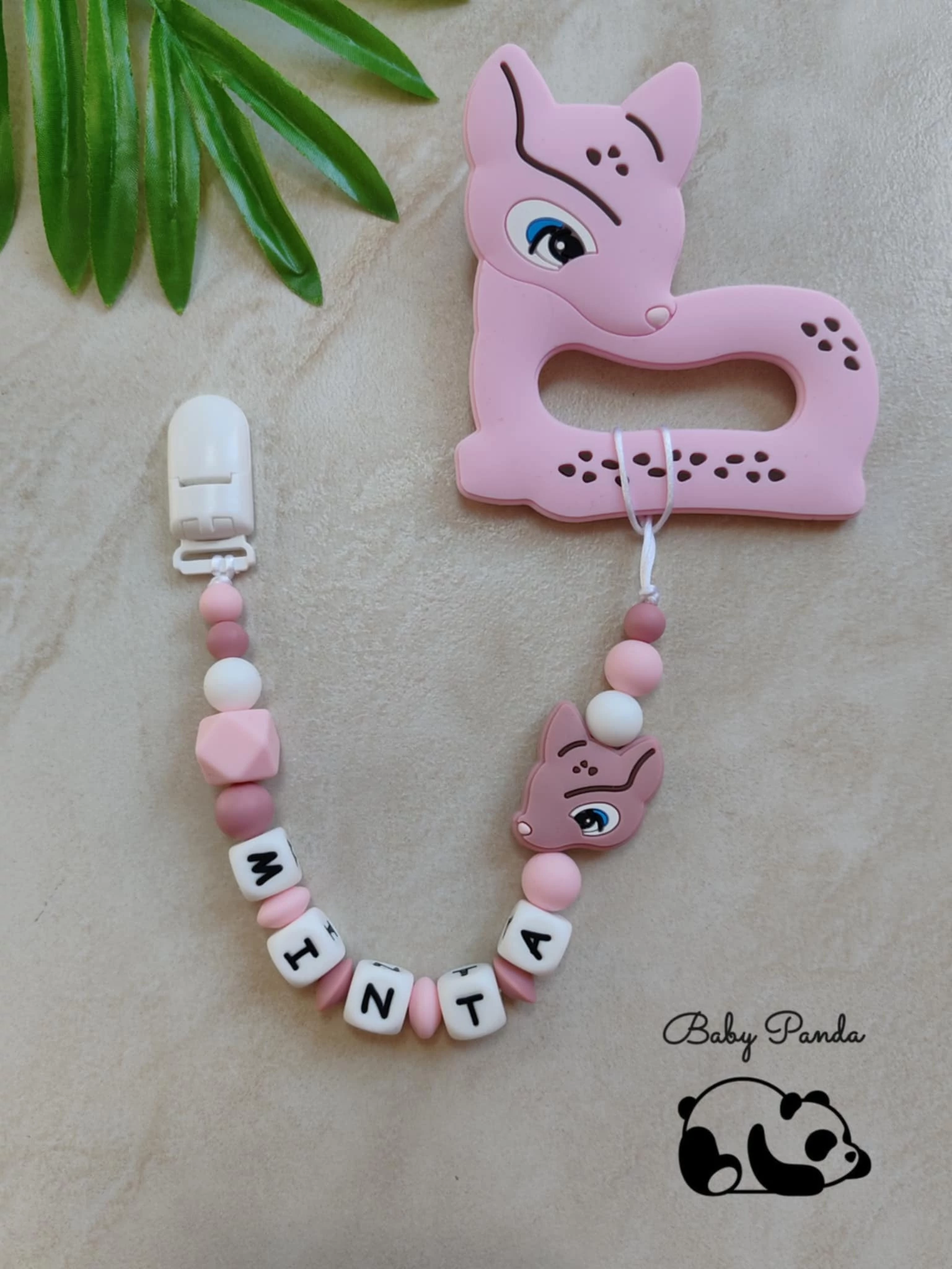 Névre szóló rágcsalánc - Őzike - rózsaszín