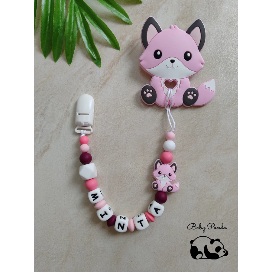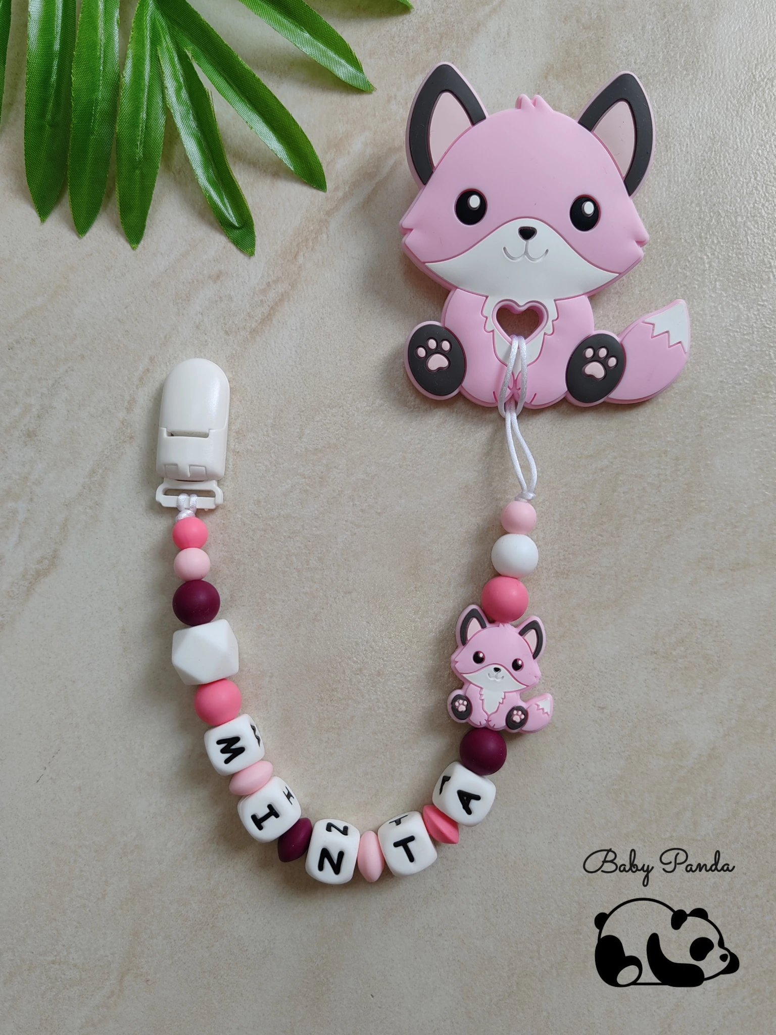 A névre szóló rágcsalánc – Róka – rózsaszín barátságos mintájával és lágy színével egyaránt vidám és stílusos kiegészítője lehet a baba mindennapjainak. Ez a neves rágcsalánc egyedi névvel készül, így személyre szabott és maradandó emlék a család számára.